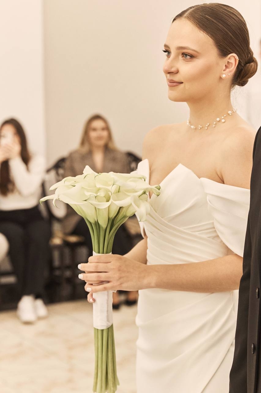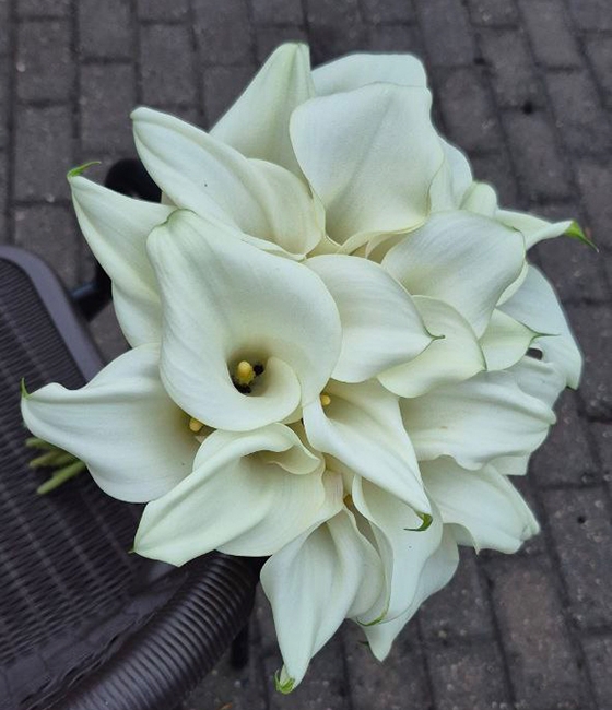 Стильный букет из 23 белых каллл. При оформлении заказа можно согласовать любое количество