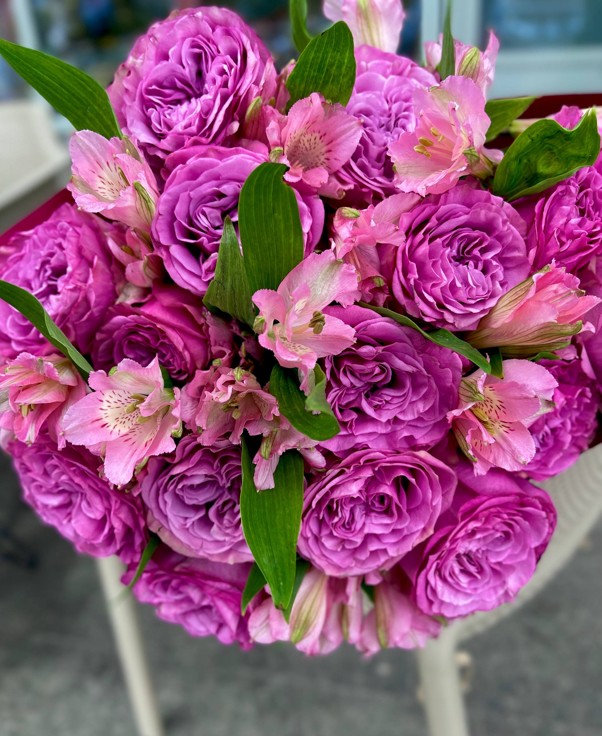 Букет из пионовидной розы и альстромерии