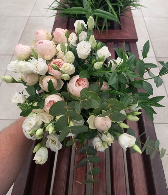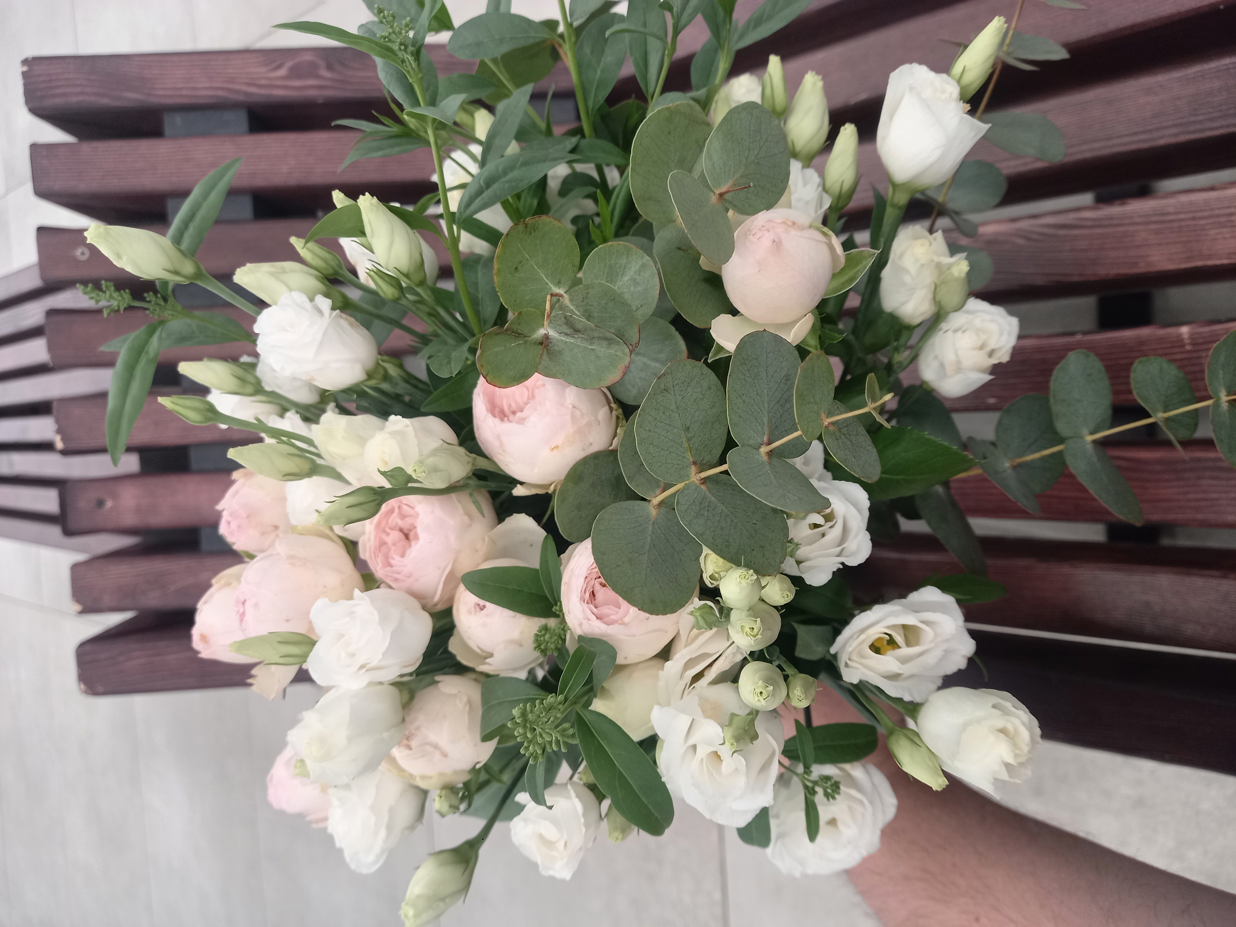 Букет из пионовидной розы и эустомы