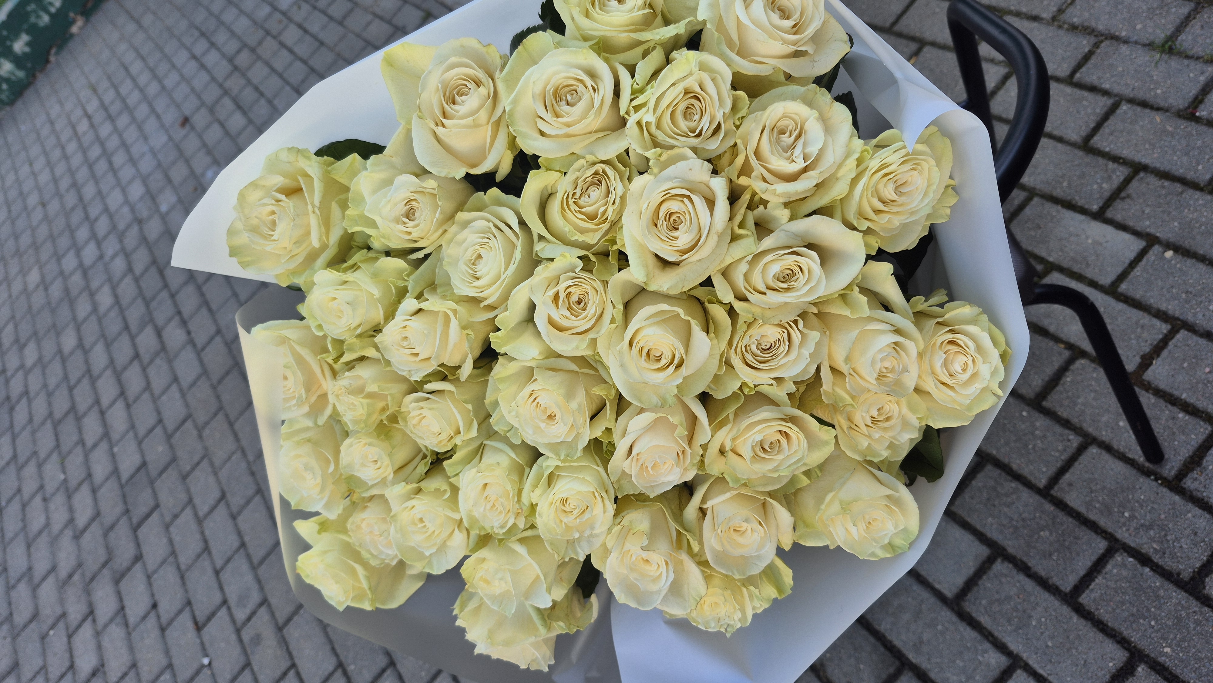 Букет из крупных белых роз пр/во Эквадор 65/70см, сорта Мондиаль, 45шт