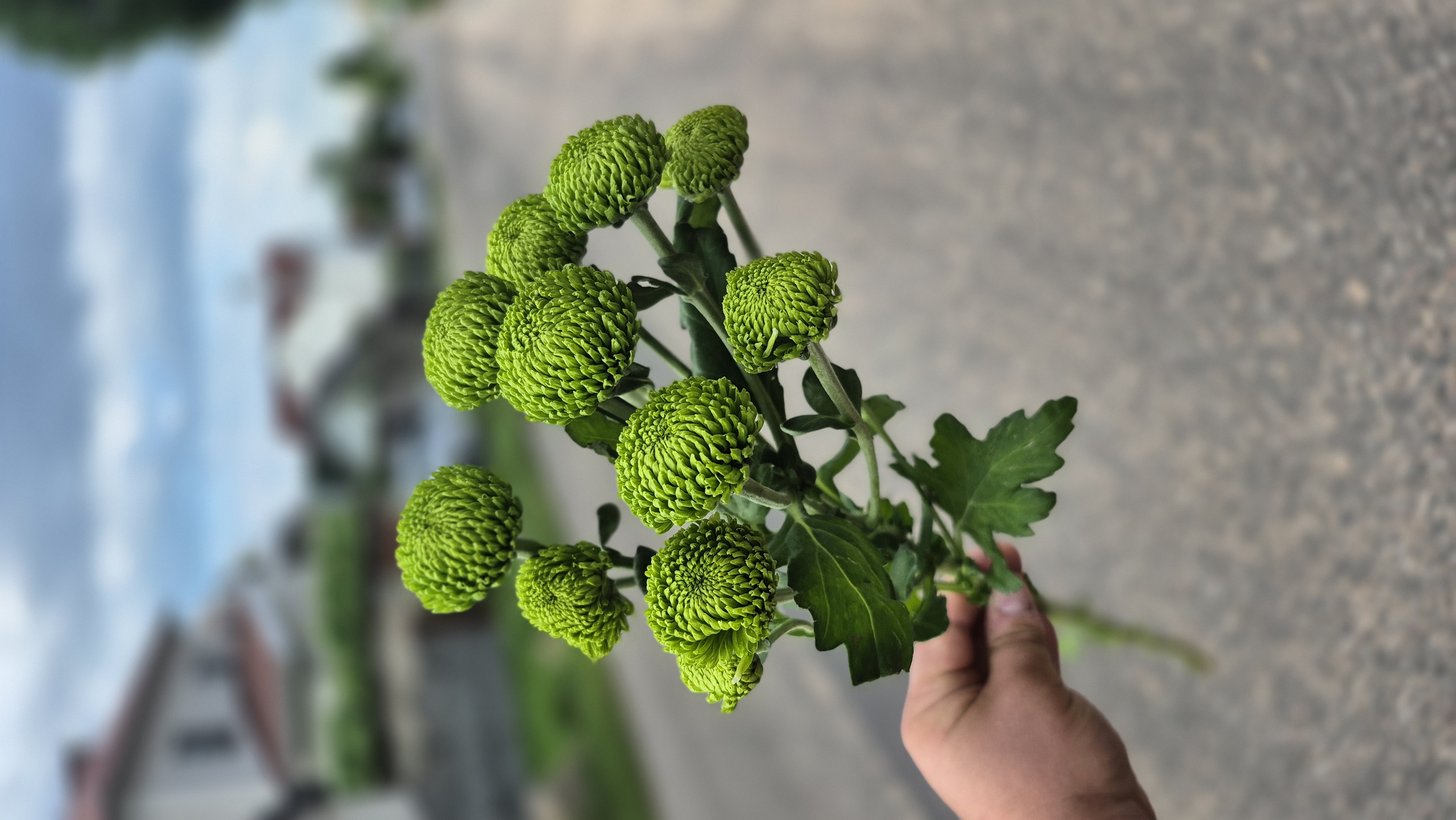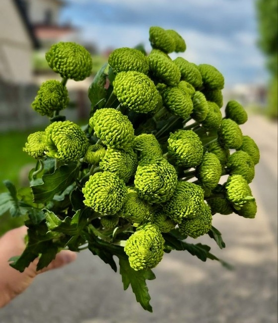 Поштучный выбор. Натуральная кустовая хризантема Фриллин Грин. На фото 5 стеблей