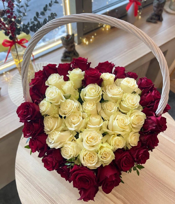 Корзина из Роз в виде сердца 51шт