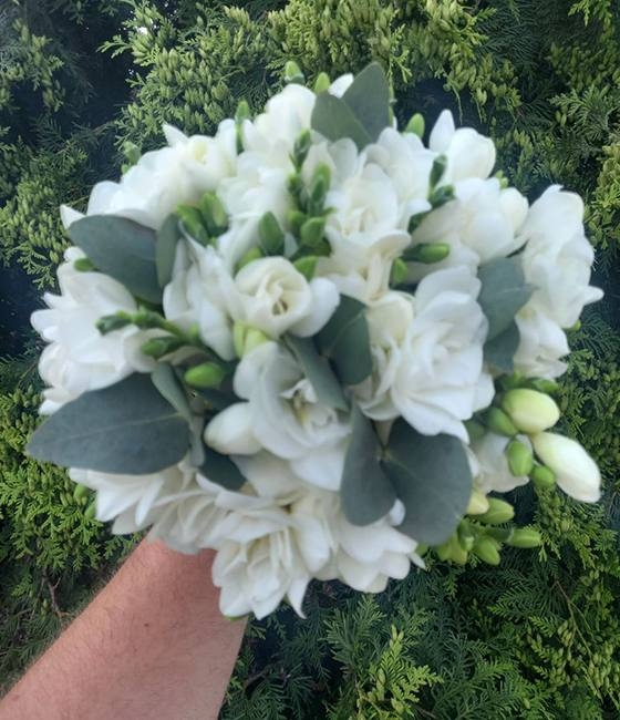 Нежнейший букет из белых фрезий с эвкалиптом. При заказе обсуждаемы детали. Идеально.